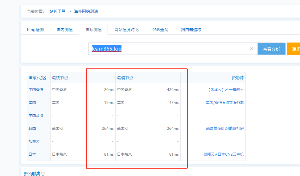 如何检测网页打开速度 平时自己搭建好的网站,想测试一下打开速度,可以用站长站提供的网页测速工具: 打开路径 :站长工具 > Ping检测 检测类型分别包括: Ping检测 国内测速 国际测速 网站速度对比 DNS查询 路由器追踪 在对应的工具下输入网址即可检测: 国内测速: 国际测速: web #web 玩转树莓派 上一篇 如何在本地安装调试Wordpress 下一篇